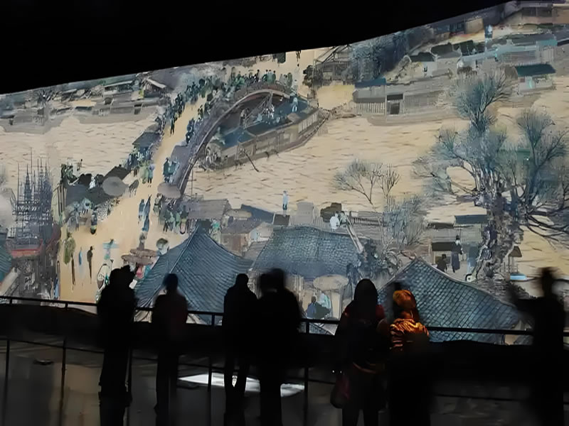 這場神奇的"復(fù)活儀式"全靠數(shù)字投影和全息技術(shù)這對"時空魔術(shù)師"聯(lián)手打造。他們給每件文物都施了"動態(tài)魔法":敦煌飛天飄帶的每一道褶皺都開始隨風(fēng)起舞,兵馬俑的眉宇間突然有了生動的表情變化,《韓熙載夜宴圖》里的賓客們居然推杯換盞熱鬧非凡。最絕的是,這些"活過來"的歷史人物不僅會動,還能和觀眾"嘮嗑"——您對著孔子像行個禮,老人家可能就會捋著胡須回您一句"有朋自遠(yuǎn)方來";要是對著唐代侍女比個心,說不定會收獲一個掩面嬌羞的偷笑。