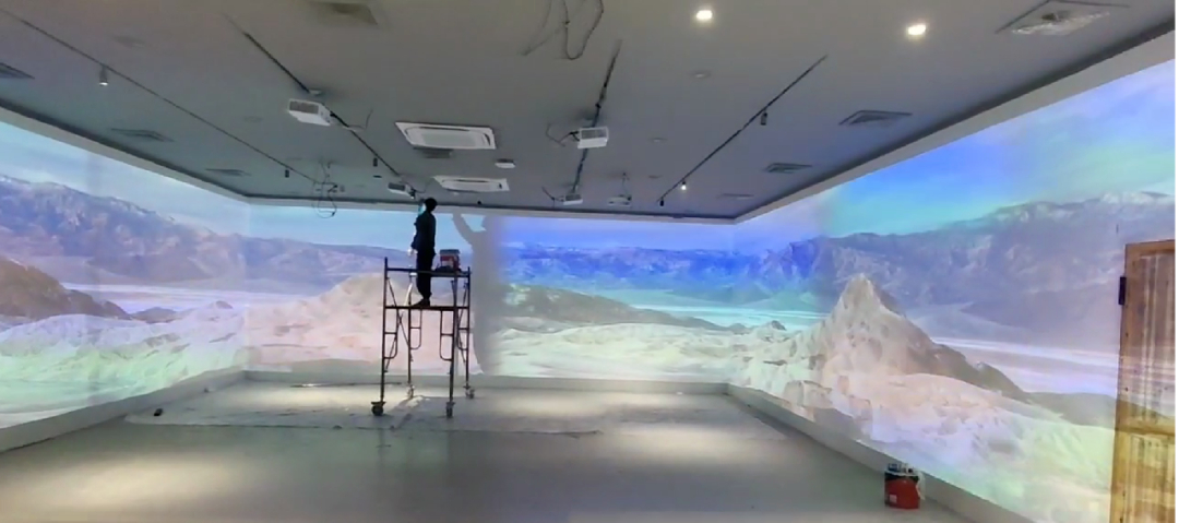 這次的九華山花園餐廳,我們根據(jù)環(huán)境以及場(chǎng)地的布局,我們決定在頂部進(jìn)行投影儀的安裝讓場(chǎng)景效果最大化。這次我們用了10臺(tái)迪恒420激光高清投影機(jī)打造,該激光高清投影機(jī)擁有4100lm高亮度,即使是在宴會(huì)廳明亮的燈光下,畫(huà)面依舊清晰亮麗。色彩區(qū)域達(dá)到REC.709色域標(biāo)準(zhǔn),色彩鮮艷真實(shí),超高對(duì)比度使得畫(huà)面更通透細(xì)膩,景深豐富,無(wú)論是浩瀚宇宙還是繽紛花海都能完美呈現(xiàn)。為用戶(hù)帶來(lái)無(wú)與倫比的虛擬影像,將世界萬(wàn)象盡收眼底,觀(guān)看效果更真實(shí)生動(dòng)。